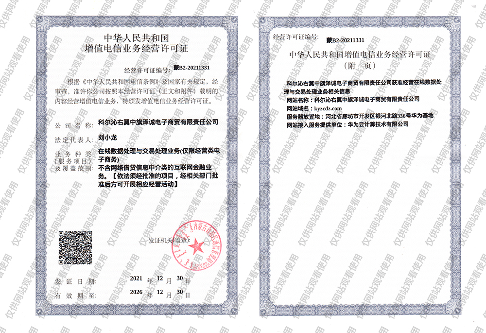 电信增值许可证 蒙B2-20211331